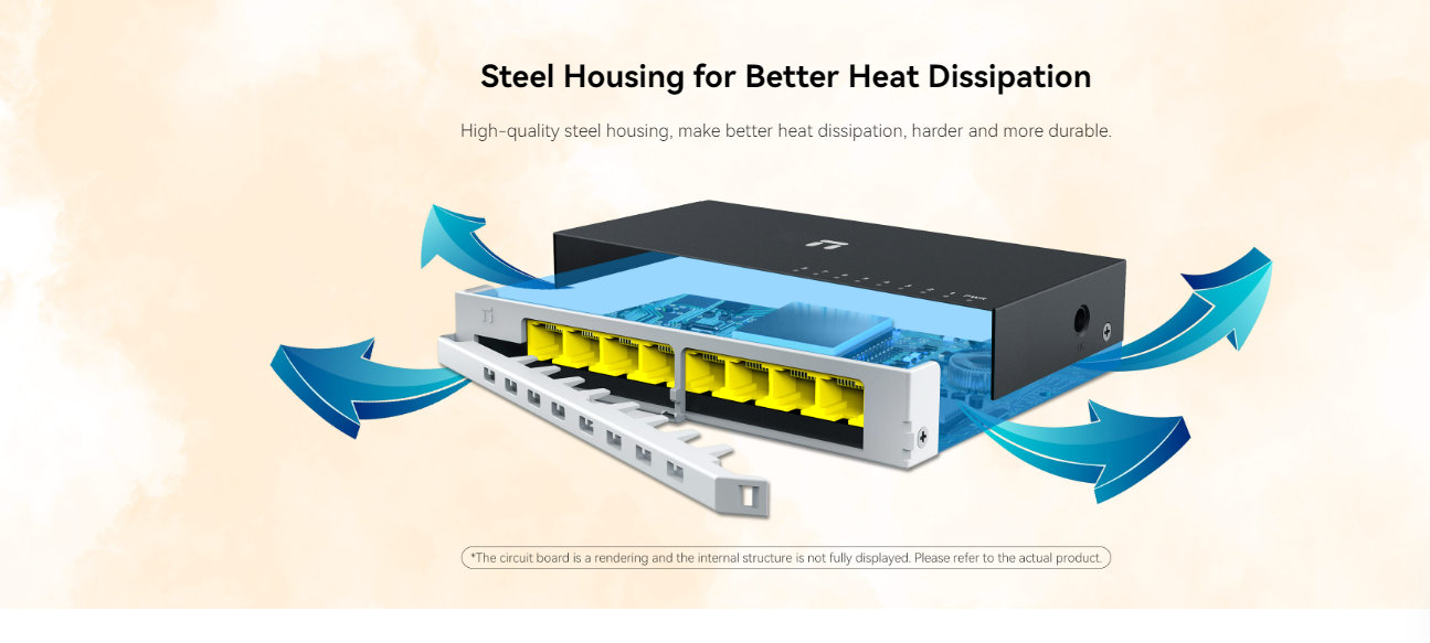 Chức năng sản phẩm Switch để bàn Gigabit 8 cổng TL-SG1008D của TP-LINK cung cấp cho bạn 1 giải pháp dễ dàng để chuyển đổi sang Ethernet Gigabit. Giúp tăng tốc độ máy chủ mạng