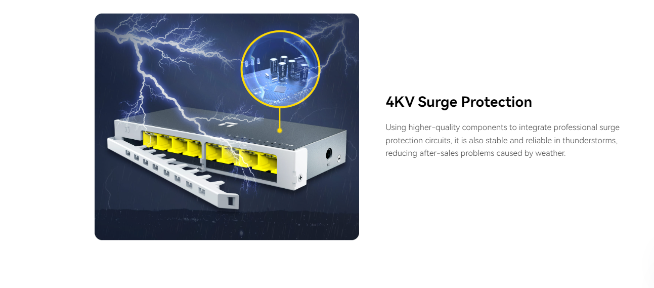 MÔ TẢ SẢN PHẨM – 8 × Cổng PoE 10/100M, 2 × Cổng Gigabit RJ45 – Tổng công suất PoE 60W – Hỗ trợ 802.1Q VLAN – Hỗ trợ PoE watchdog để phát hiện và