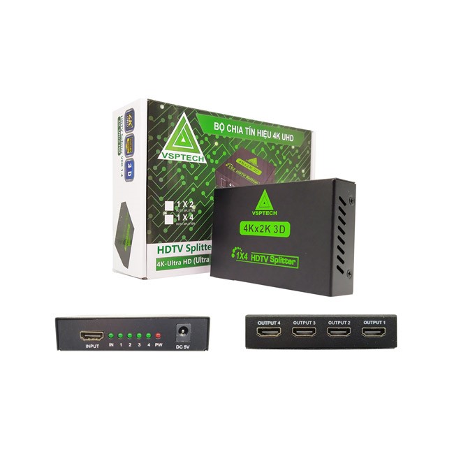 Mua tại TiktokHDTV SPLITTER VER 1.44K-Utra HD Chia 1 tín hiệu đều vào ra 4 tín hiệu HDHI Tương thích tất cả thiết bị chuẩn HD và audio HD Tương thích HDCP và các chuẩn nén và giải mã âm thanh DTS, Dobby, 7.1 Channel Audio Product: 1 port HDTV Splitter HDTV Source inport: 1 Display device outport: 2 Source port connector: 19 pin HDTV Source Device port conector: 19 pin HDTV HDCP compliant: yes Device port LED: yes 4 Videlbandwidth: up to 4,95GHz Vertical fraquency range: 60/85Hz Power consumption (max): 5 Watts HDTV ver: 1,4