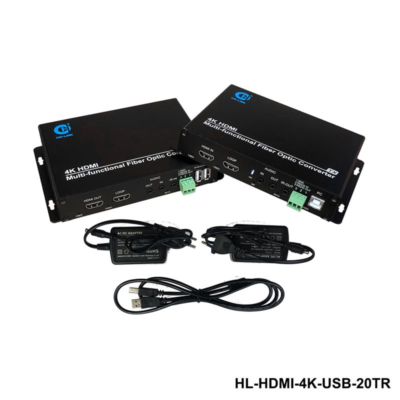 Bộ Kéo dài HDMI qua cáp quang 4K có cổng USB được thiết kế để giải quyết vấn đề chất lượng hình ảnh, biến dạng màu sắc và khả năng truyền tín hiệu HDMI qua một khoảng cách xa lên đến 20KM. HL-HDMI-4K-USB-20T/R hỗ trợ cổng cắm USB cho bàn phím và chuột giúp bạn có thể vừa xem hình ảnh vừa điều khiển trực tiếp . Sản phẩm thiết bị chuyển đổi HDMI sang quang HOLINK được nhập khẩu bởi công ty giải pháp viễn thông Thiên Tân được thiết kế để hiển thị màn hình phẳng và hiển thị cho quảng cáo màn hình lớn. kèm theo âm thanh và video HDMI chất lượng cao. Thiết bị sử dụng module SFP LC riêng biệt để truyền hình ảnh với băng thông truyền lên đến 10G.