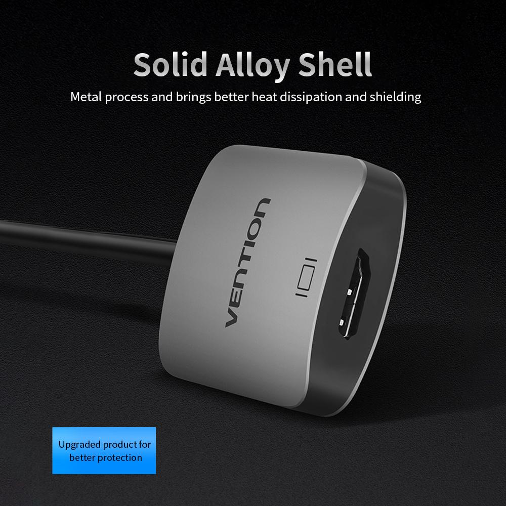 VENTION Type-C to HD Adapter supports 4K high definition. You can enjoy largescreen at home or make presentation on a company conference. Metal shell makesit durable and solid. Aluminium foil shielding gives a great and stableperformance.