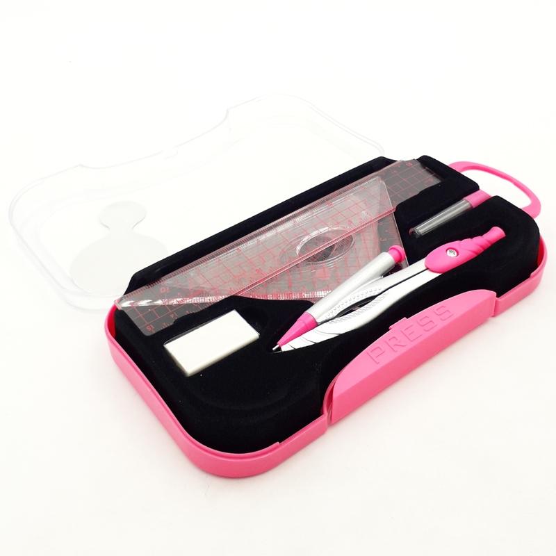 Bộ Compa và thước đủ loại màu hồng