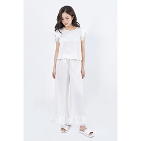 Đồ bộ mặc nhà WANNABE BDS41 đồ bộ quần dài phối áo 2 dây cúp ngực viền ren gợn sóng mang lại vẻ gọn gàng nữ tính Đồ bộ mặc nhà phi lụa cao cấp