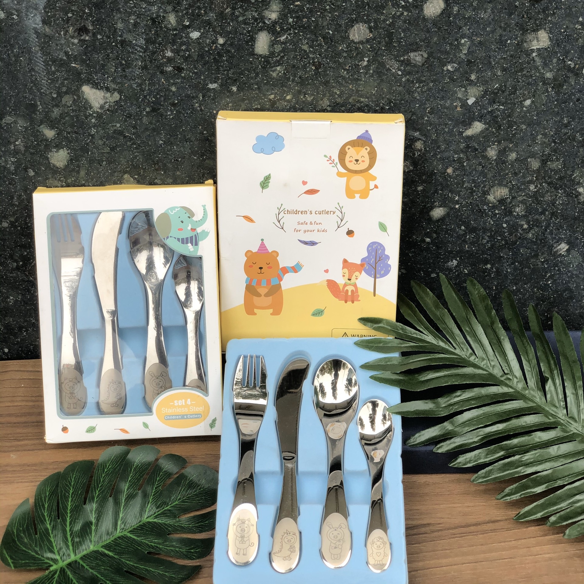 Bộ đồ ăn 4 món dành cho trẻ em thuộc dòng Jungle là sản phẩm hoàn hảo cho những bàn tay nhỏ bé đang trải nghiệm dao, nĩa và thìa đầu tiên. Để làm cho trải