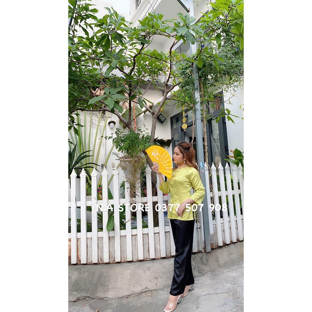- Áo thiết kế cổ tròn thiết kế họa tiết hoa cực xinh xắn đặm chất chiếc áo bà ba