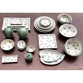 Giới thiệu bộ đồ ăn men xanh ngọc 14 món Vẽ Hoa Cỏ - chuồn - Gốm sứ bát tràng