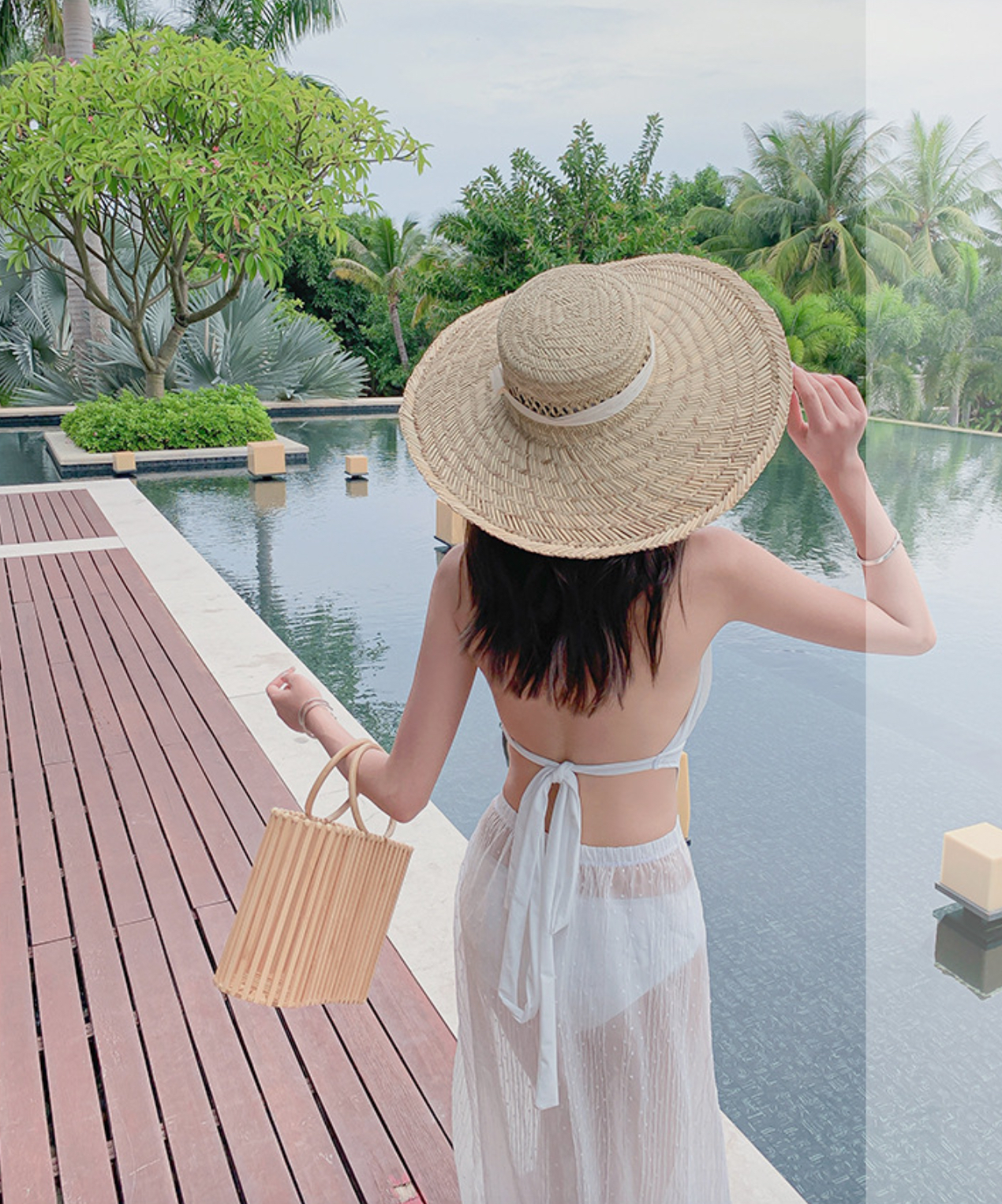 - Đơn giản nhưng vẫn cực kì nổi bật nhờ đường cong ôm sát, cách điệu với lớp bèo vừa che vai, vừa tôn vòng một các nàng ạ. - Bikini mặc đi biển làm