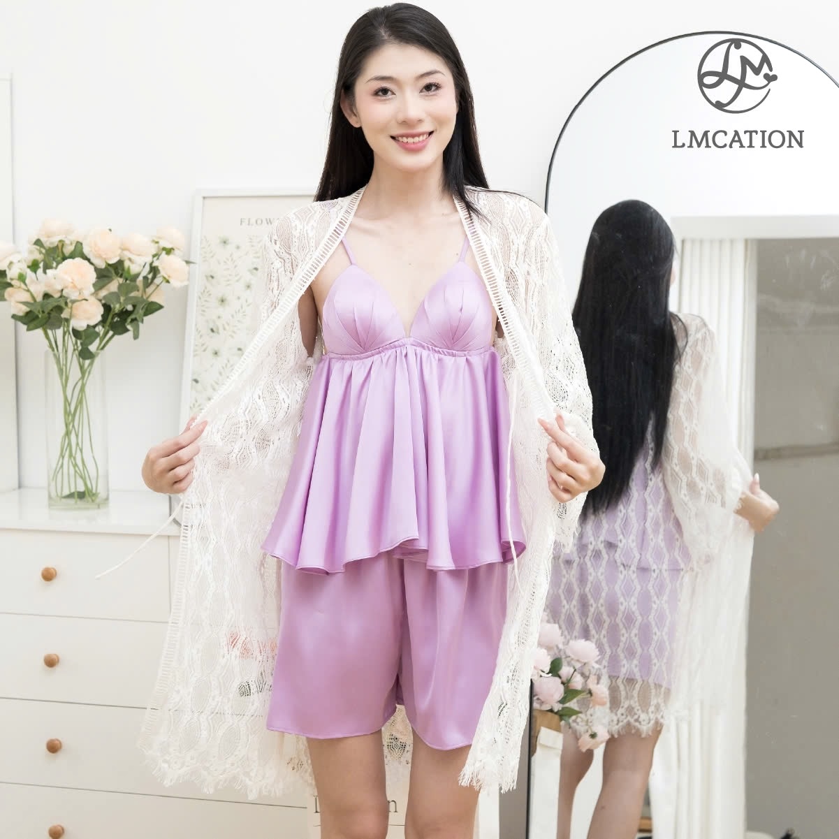 Áo dây mặc nhà & Quần đùi mặc nhà LMcation Lavender được may đo tỉ mỉ bởi cộng đồng phụ nữ LMcation, để tôn dáng và che khuyết điểm cho phụ nữ với bất kỳ hình dáng hay màu da nào. Mỗi sản phẩm được cắt may bởi một trong những đối tác nữ của chúng tôi ở Việt Nam, chúng tôi tạo cơ hội cho các cộng đồng phụ nữ và đào tạo tay nghề cho họ để họ có tương lai tốt đẹp và thu nhập bền vững hơn. Sản phẩm được đóng gói bằng túi vải có thể tái sử dụng là thành phẩm từ bàn tay của cộng đồng người khuyết tật.