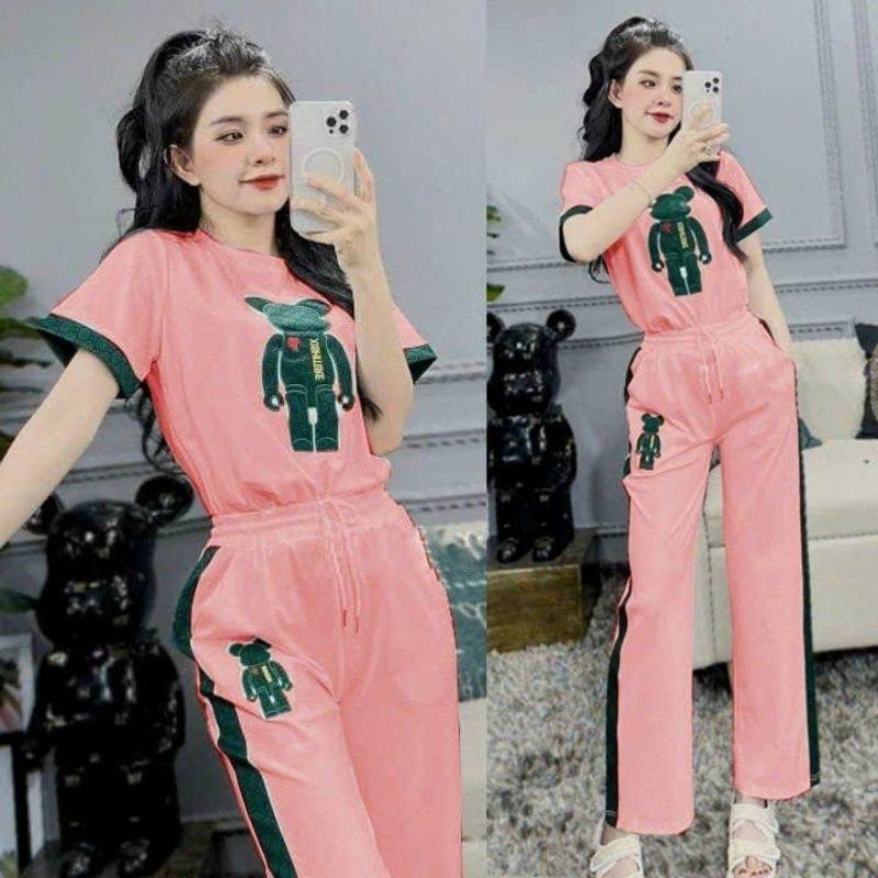 ✨Bộ đồ thun nữ bigsize quần ống suông dài áo tay ngắn thêu hình gấu quảng châu bao đẹp, sét bộ đi chơi, mặc nhà mẫu mới