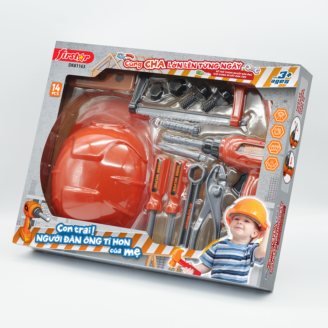 Bộ dụng cụ đồ chơi cho bé, DK 81163 Được mô phỏng với các dụng cụ cần thiết của các chú kỹ sư, công nhân, thợ cơ khíúp các bé trai tha