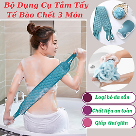 ✨Bộ Dụng Cụ Tắm Tẩy Tế Bào Chết 3 Món – Sạch Sâu, Da Mịn Màng Set tắm tẩy da chết 3 món tiện lợi Combo găng tay – dây cọ lưng – bông tắm tạo bọt