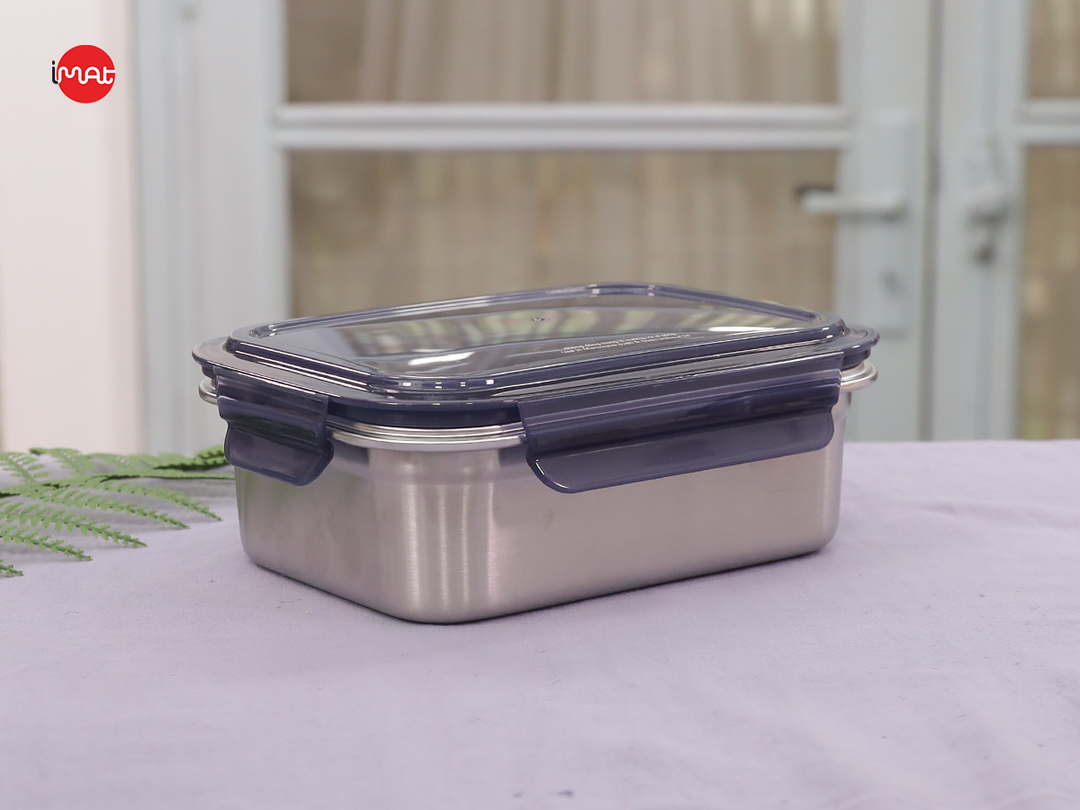Bộ 4 hộp chữ nhật inox, nắp nhựa khoá 4 cạnh với dung tích: 250ml, 650ml, 1200ml, 2100ml. Sử dụng công nghệ mới kết hợp với inox 304 để tạo ra hộp đựng thực phẩm inox dùng được trong lò vi sóng. Sử dụng trong lò nướng, tủ lạnh, vi sóng hoặc ngăn đông. Hộp nhẹ và kín nước, kín hơi nên dễ mang theo. Dùng được trong máy rửa chén.