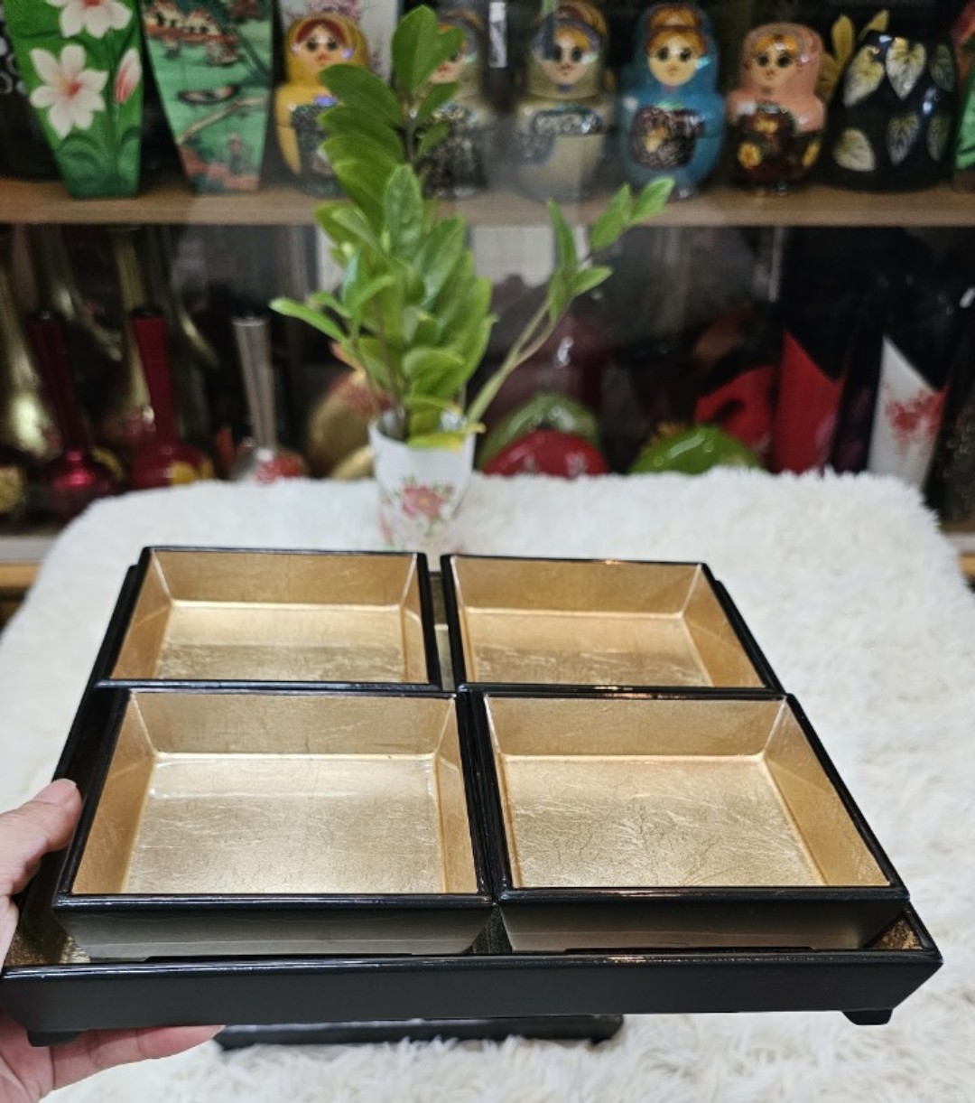 Chất liệu sơn mài nên khay rất bền, bóng đẹp theo năm tháng, thân thiện môi trường.