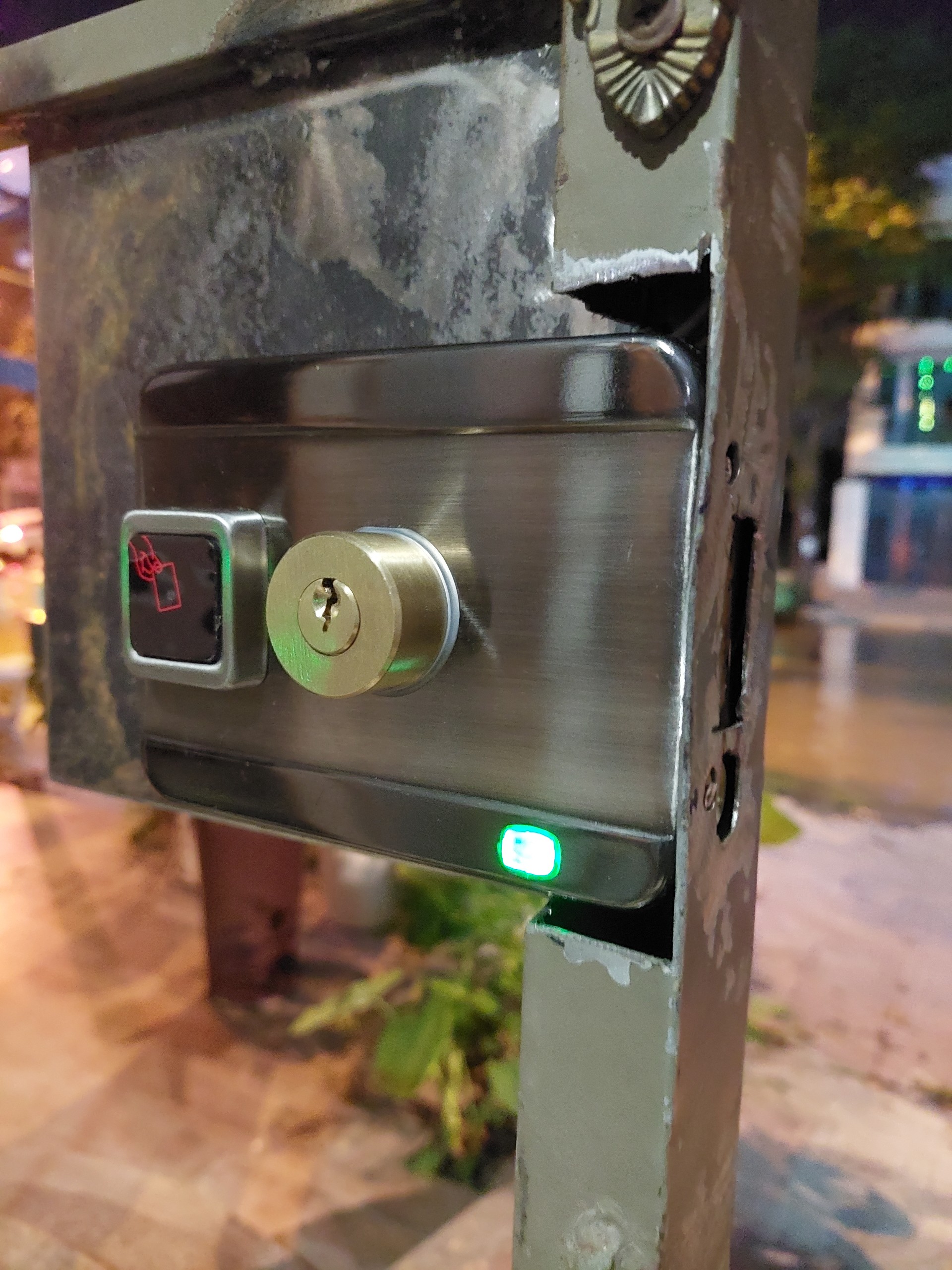Khóa cổng vân tay kết hợp báo động nhắc quên đóng cửa cho nhà trọ