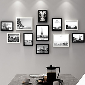 ✨Bộ Khung Ảnh Treo Tường Phong Cách Trắng Đen Nghệ Thuật Tặng Kèm bộ ảnh như hình mẫu, đinh treo tranh và sơ đồ treo - PGC283