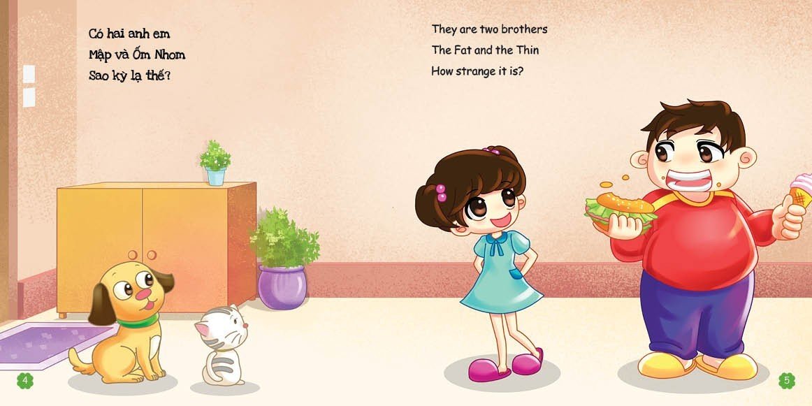 ăn mọi lúc, mọi nơi. Cuối cùng, cậu bé có cái bụng to đùng. Ngược lại cô em Ốm Nhom thì chẳng chịu ăn uống gì, nên người