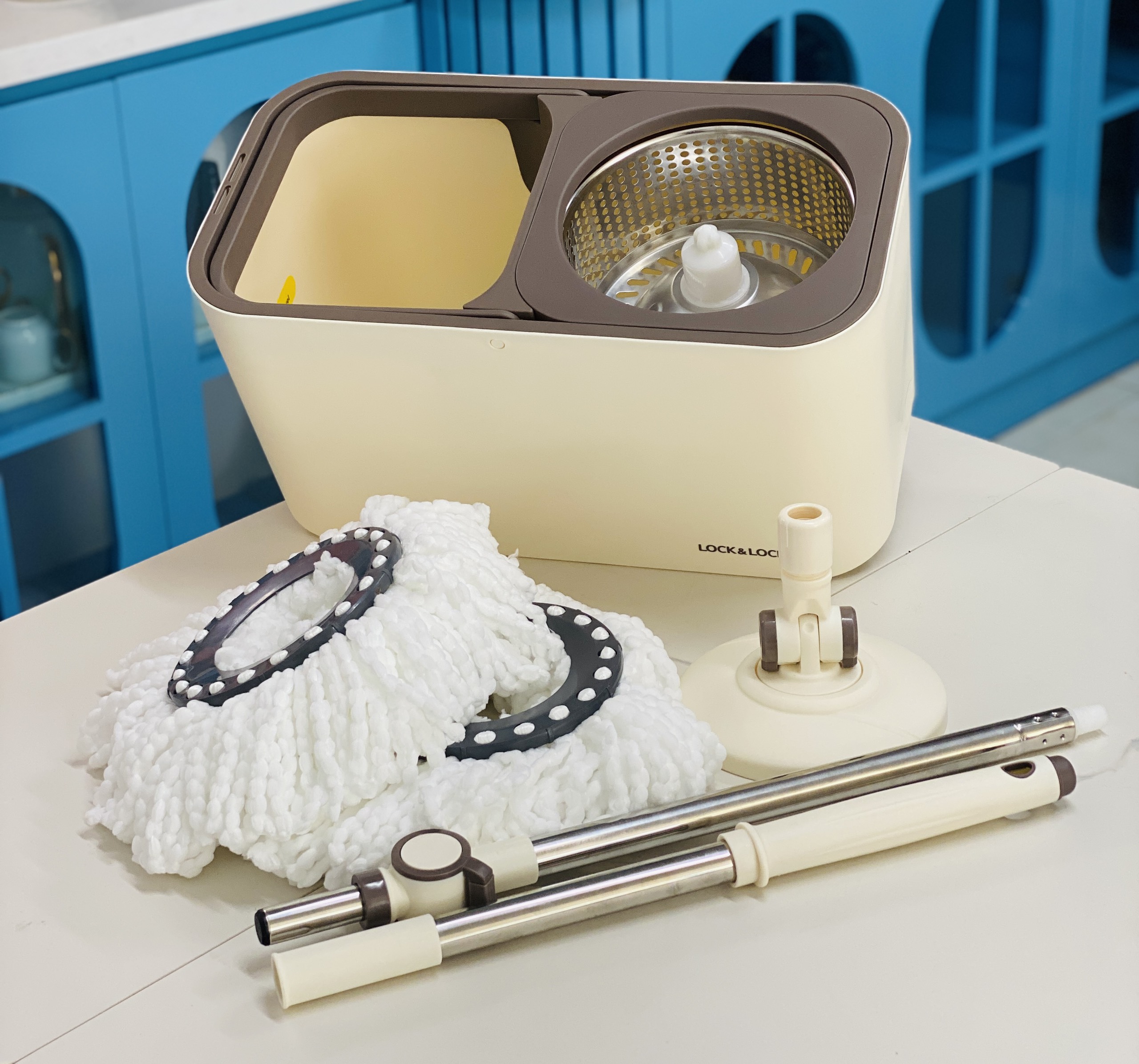 Bộ cây lau nhà Lock&Lock ETM498MITS2 SPIN MOP - Hàng chính hàng, xoay 360 độ và kèm 3 bông lau - JoyMall Bộ sản phẩm gồm 1 thùng chứa nước + 3 bông lau +