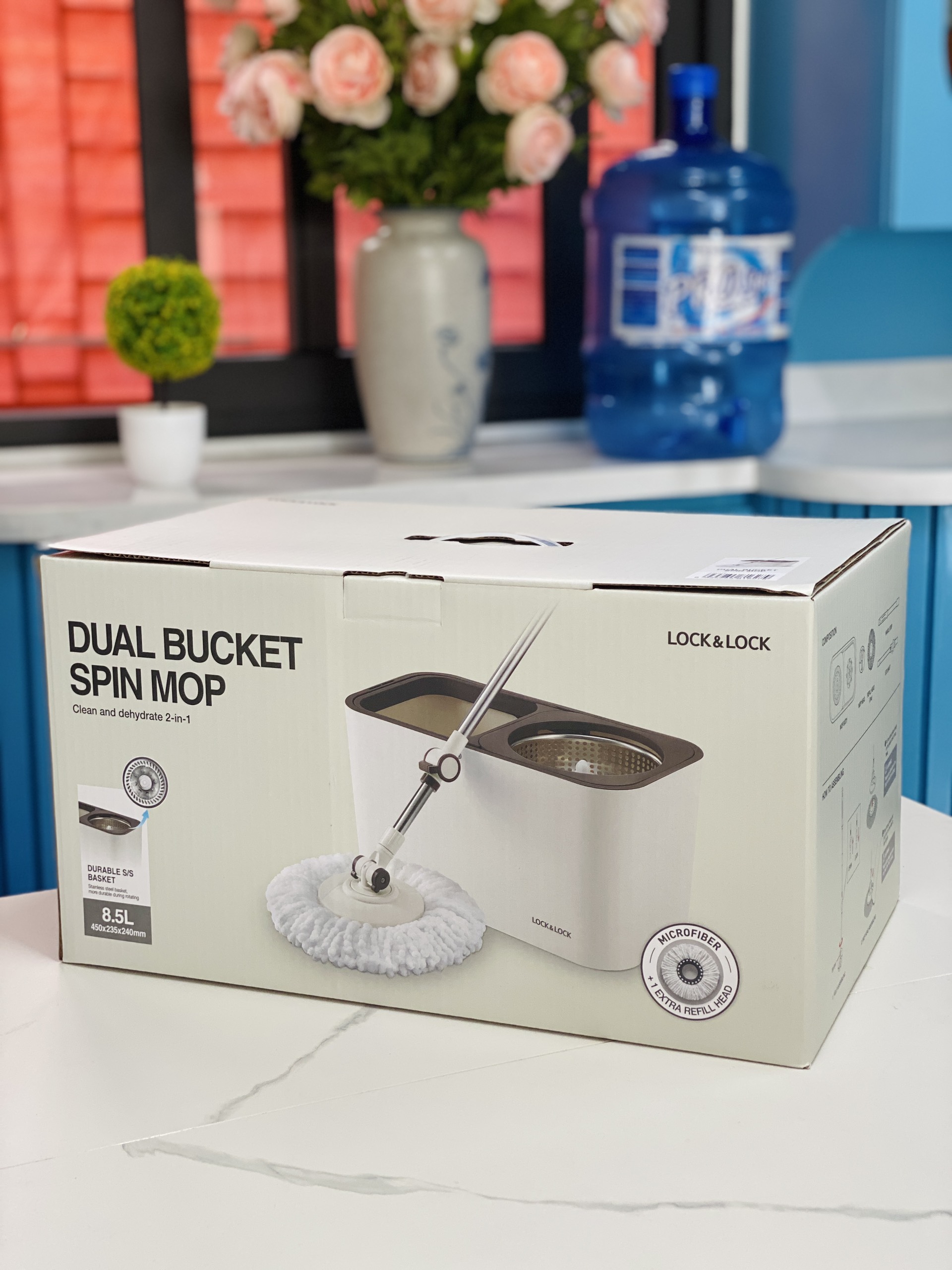 Bộ lau nhà Lock&Lock Dual Bucket Spin Mop ETM478 Thông số sản phẩm - Kích thước: 450x235x240mm - Dung tích: 8.5L - Chất liệu: Nhựa PP cao cấp, sử dụng bền bỉ với thời gian - Xuất xứ: Trung
