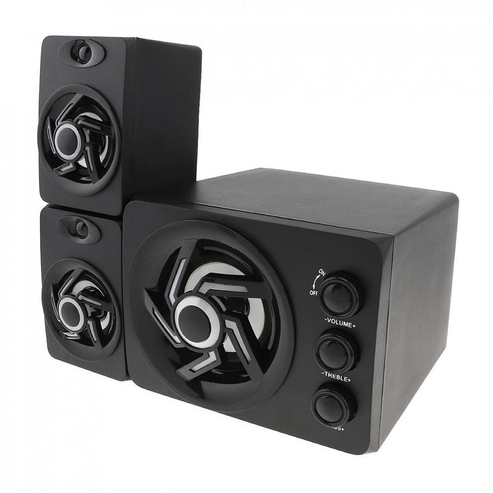 Features: Comes with 2*5W double horns, surround sound and the deep bass matched, bringing you high-quality music. Compatible with computer, mobile phone, TV, tablet, game consoles and other 3.5mm audio devices. Independent volume knob, convenient