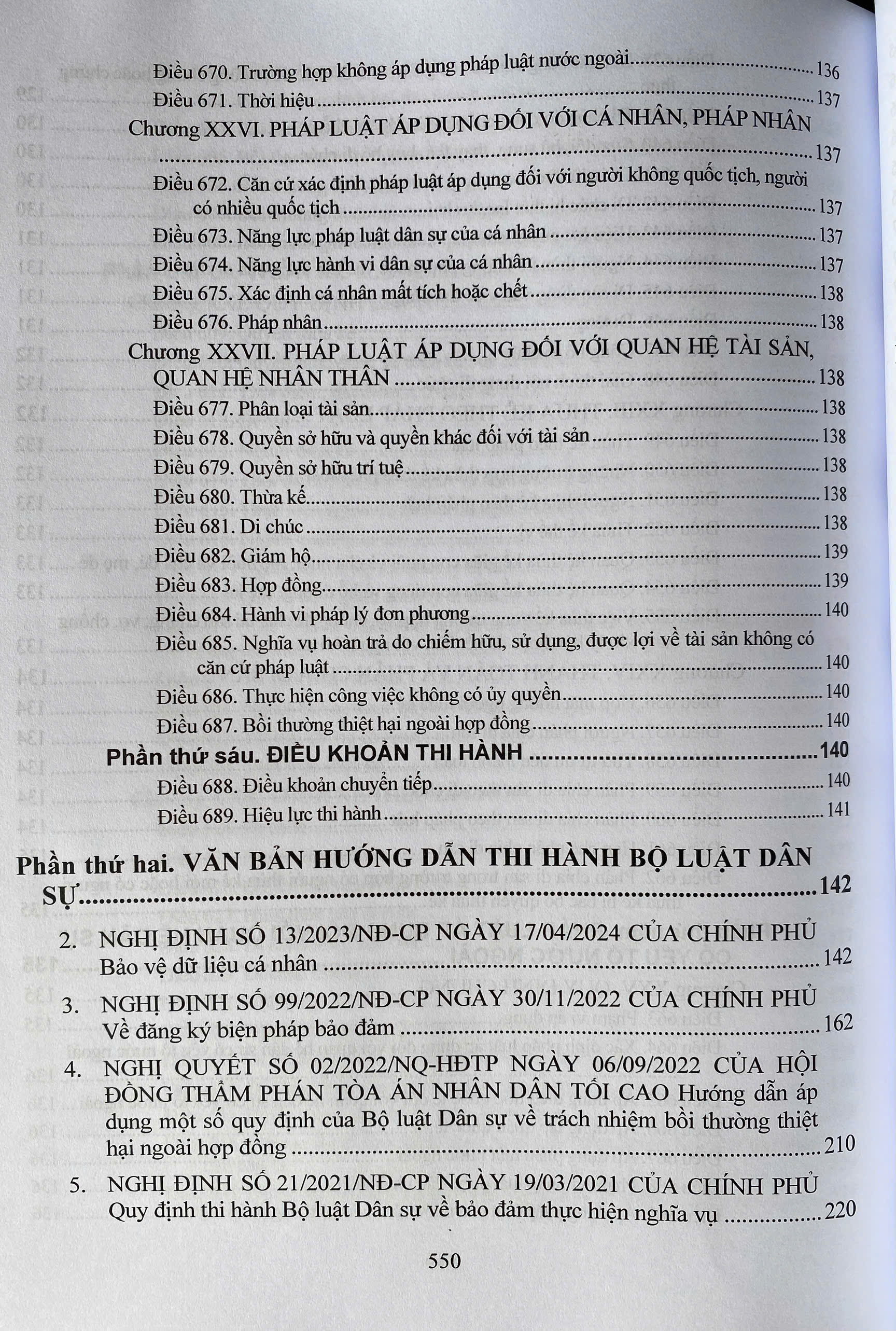 Để Bộ luật Dân sự. Bộ luật Tô tụng dân sự đi vào cuộc sông, góp phần nâng cao ý thức pháp luật của người dân, tạo điêu kiên cho việc nhân thức thống nhât trong áp dụng đề giải quyết các vụ án dân sự, Nhà xuất bản Lao Động cho xuất bản cuốn sách: BỘ LUẬT DÂN SỰ NĂM 2015 ( THEO LUẬT SỐ 91/2025 ) BỘ LUẬT TỐ TỤNG DÂN SỰ NĂM 2015 (Sửa đổi, bổ sung năm 2025) VÀ CÁC VĂN BẢN HƯỚNG DẪN THI HÀNH