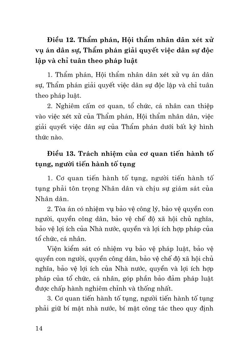 Mua tại TiktokCuốn sách là văn bản nhất thể hóa của Bộ luật Tố tụng Dân sự năm 2015 với nội dung sửa đổi, bổ sung Bộ luật Tố tụng Dân sự năm 2015 của Bộ luật Lao động năm 2019 và Luật Doanh nghiệp năm 2020; gồm 10 phần, 42 chương, 517 điều, quy định những nguyên tắc cơ bản trong tố tụng dân sự; trình tự và thủ tục để khởi kiện, yêu cầu để Tòa án giải quyết tranh chấp dân sự, hôn nhân và gia đình, kinh doanh, thương mại, lao động…, cung cấp cho bạn đọc một văn bản Bộ luật Tố tụng dân sự hoàn chỉnh, thuận tiện trong tra cứu và áp dụng Bộ luật.