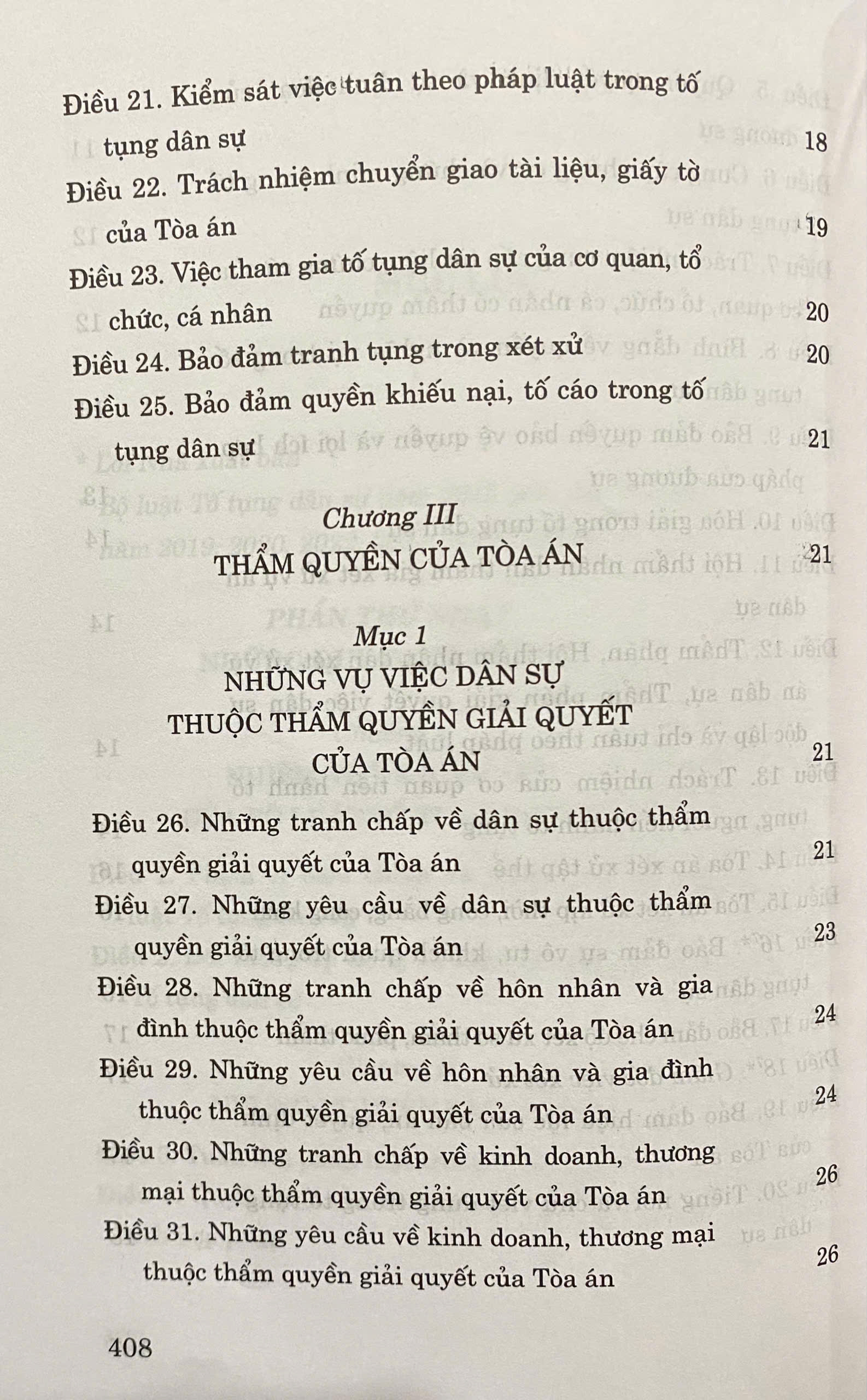 Cuốn sách là văn bản nhất thể hóa của Bộ luật Tố tụng Dân sự năm 2015 với nội dung sửa đổi, bổ sung Bộ luật Tố tụng Dân sự năm 2015 của Bộ luật