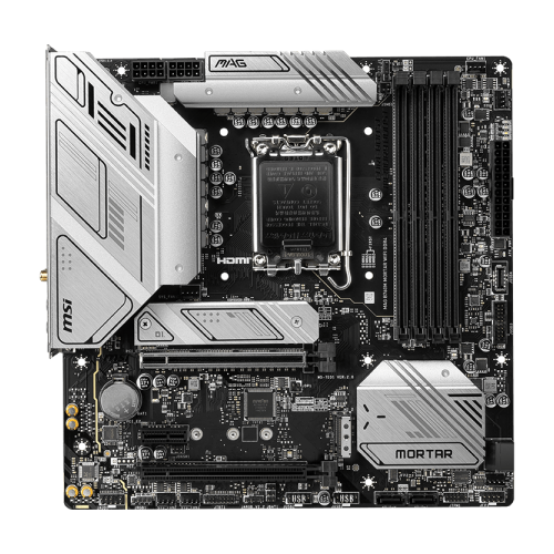 Nhà sản xuất MSI Model MAG-B760M-MORTAR-WIFI-DDR4 CPU hỗ trợ - Intel Core 12th/ 13th - Socket LGA1700 Chipset B760 Hỗ trợ Ram 4 x DDR4 5333(OC)/ 5200(OC)/ 5066(OC)/ 5000(OC)/ 4800(OC)/ 4600(OC)/ 4400(OC)/ 4266(OC)/ 4200(OC)/ 4000(OC)/ 3800(OC)/ 3733(OC)/ 3600(OC)/ 3466(OC)/ 3400(OC)/ 3333(OC)/ 3200(JEDEC)/ 2933(JEDEC)/ 2666(JEDEC)/ 2400(JEDEC)/ 2133(JEDEC) (Maximum 128GB) Khe cắm mở rộng - 2 x PCIe x16 - 1 x PCIe x1 Hỗ trợ ổ cứng 1 x M2 2280/2260/2242 PCIe 4.0 x4/ SATA 1 x M2 2242/ 2260/ 2280 PCIe 4.0 x4 4 x SATA III 6Gbps *Support Raid 0, 1, 5, 10 cho SATA LAN/ Wireless - LAN: Realtek RTL8125BG 2.5Gbps - WIFI 6E + Bluetooth 5.3 Audio Realtek ALC897 Cổng kết nối bên trong -Fan and Cooling 1 x CPU Fan 1 x Pump Fan connector 2 x system Fan