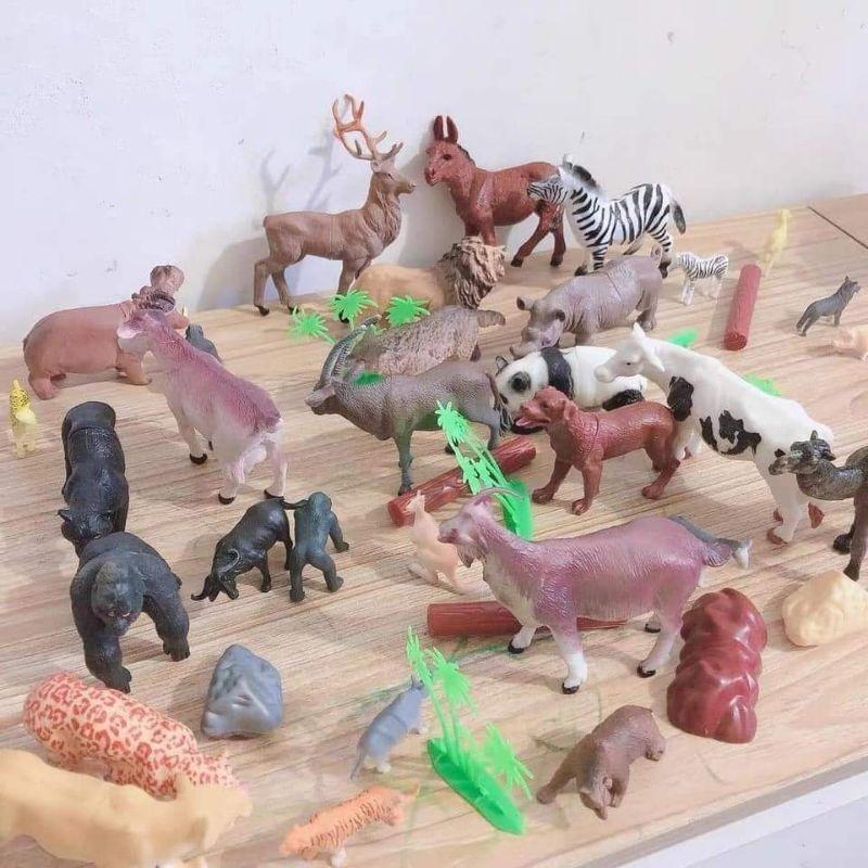 Bộ đồ chơi trẻ em mô hình động vật set 58 chi tiết thú rừng hoang dã nhựa an toàn cho bé