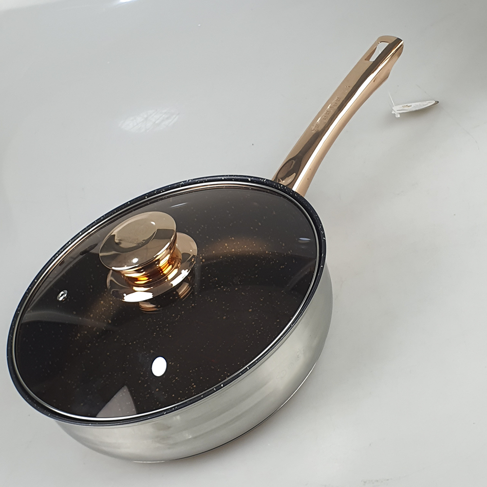 Chảo Inox 3 lớp nguyên khối Ruby sở hữu thiết kế sang trọng, chuẩn Châu Âu với chất liệu inox sáng bóng bên ngoài. Lòng chảo phủ chống dính honeycomb đen bóng bền bỉ với