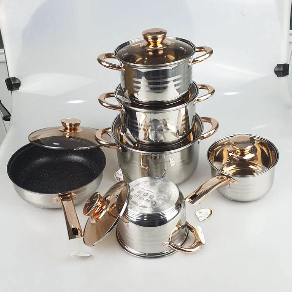 Bộ Nồi 6 Món 12 Chi Tiết ABG, Bộ Nồi Đáy Từ, Bộ Nồi Đa Năng