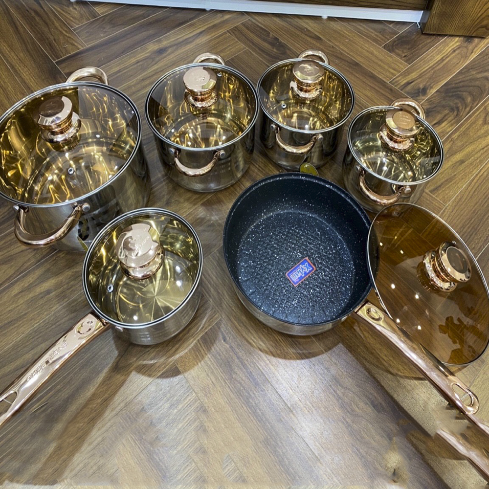 Tên sản phẩm: Bộ nồi 6 món đáy từ Inox cao cấp nắp kính dùng cho mọi loại bếp