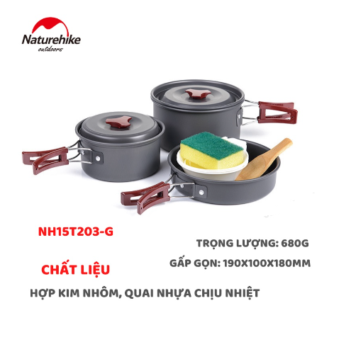 Bộ nồi du lịch xách tay nhỏ gọn NatureHike NH15T203-G