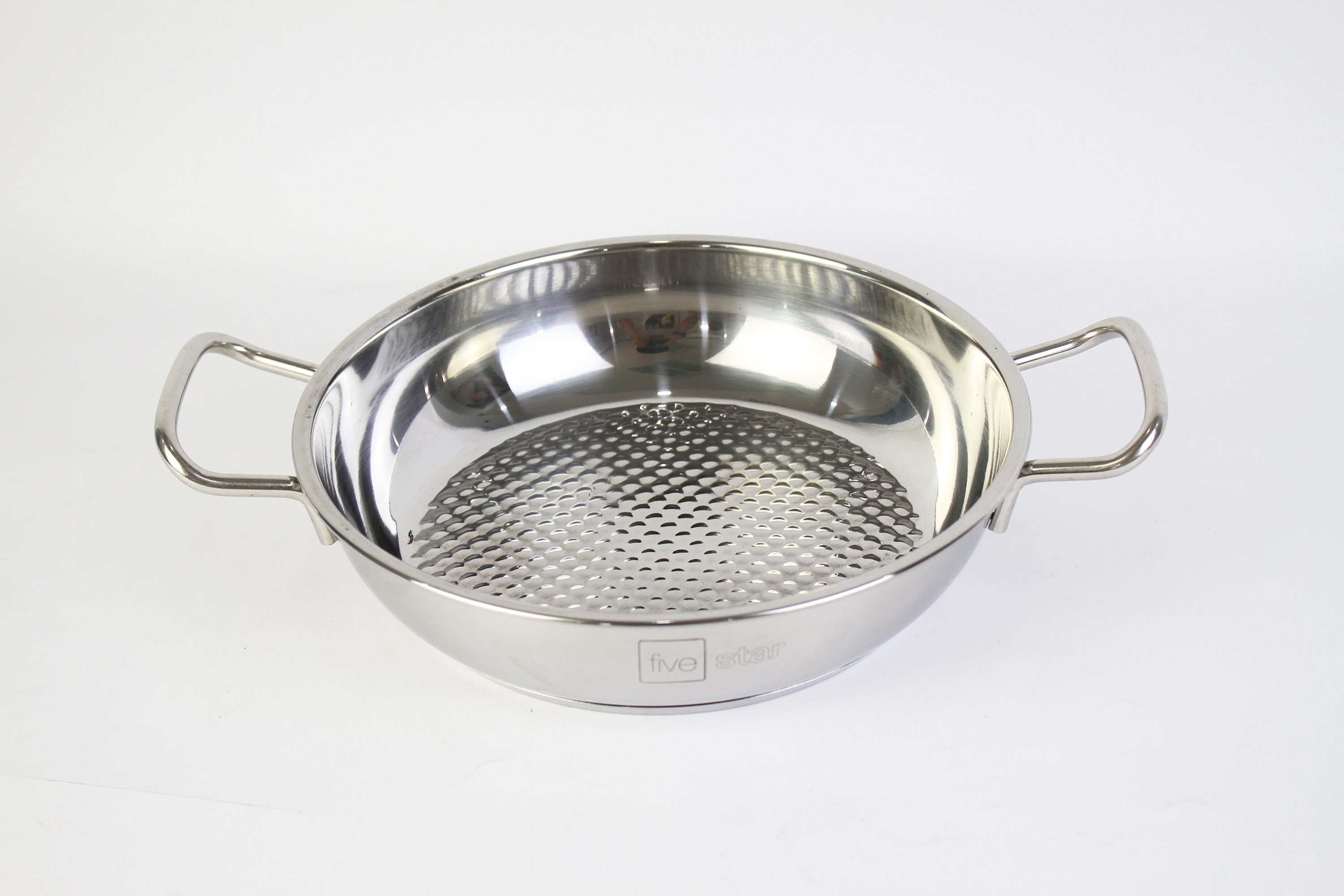 Bộ nồi chảo xửng hấp 3 Đáy Inox 430 cao cấp Fivestar Standard bếp từ nắp kính , tặng 1 vá canh Bộ nồi inox có 9 món gồm : +Quánh có đường kính