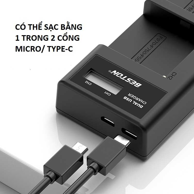 Bộ Pin F960/F750 7200mAh + Sạc Beston Dùng Cho Máy Ảnh Sony 6D 70D 60D 80D 5D3 5D2 6D2 7D2 5DSR 90D NX5 TRV1 TRV3 NX100 NX3 200 300 3000   BESTON ĐƠN VỊ DẪN ĐẦU TRONG NGÀNH SẢN XUẤT PHỤ KIỆN ĐIỆN THOẠI/ IT/ KỸ THUẬT SỐ - THƯƠNG HIỆU CAO CẤP QUỐC TẾ   Được thành lập từ năm 2007, Beston từng bước thiết lập danh tiếng trên con đường tự phát triển thương hiệu riêng của mình. Với việc tạo ra các sản phẩm chất lượng cao thời thượng Beston đã dần chiếm được lòng tin của người tiêu dùng. Sản lượng tăng nhanh chóng và liên tục đứng đầu ngành.   Các sản phẩm chính hãng thương hiệu quốc tế Beston, BTY bao gồm: pin điện thoại, bộ sạc; pin máy ảnh kỹ thuật số, bộ sạc và các thiết bị ngoại vi khác…   Sạc đôi kèm pin Beston F960/F750 7200mAh là một sản phẩm mới nhất 2022 vô cùng hữu ích và tiện dụng cho các dòng máy ảnh Sony, dung lượng pin lớn giúp người dùng có thể thoải mái sử dụng máy ảnh trong một thời gian dài mà không lo hết pin, làm gián đoạn quá trình quay, chụp.   THÔNG SỐ SẢN PHẨM: ** Pin F960: