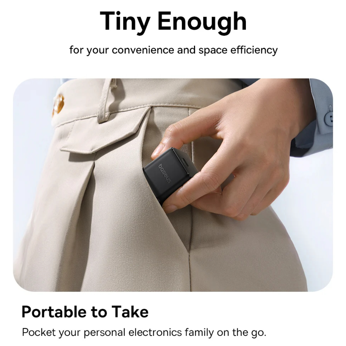 - Với lớp vỏ nhựa nhám chống bám vân tay, các đường bo cong tinh tế và màu sắc thời thượng, Baseus Palm không chỉ là bộ sạc mà còn là món phụ kiện thời trang tinh tế. Hình ảnh Bộ sạc nhanh nhỏ gọn Baseus Palm 1C 30W Kèm cáp C to C 60w dài 1M - Hàng chính hãng