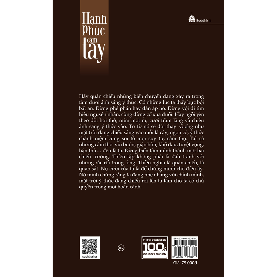 Thông tin sản phẩm Mã hàng 8935280908079 Tên Nhà Cung Cấp Thái Hà Tác giả Thích Nhất Hạnh Người Dịch Chân Đạt NXB NXB Lao Động Năm XB 2021 Trọng lượng (gr) 400 Kích Thước