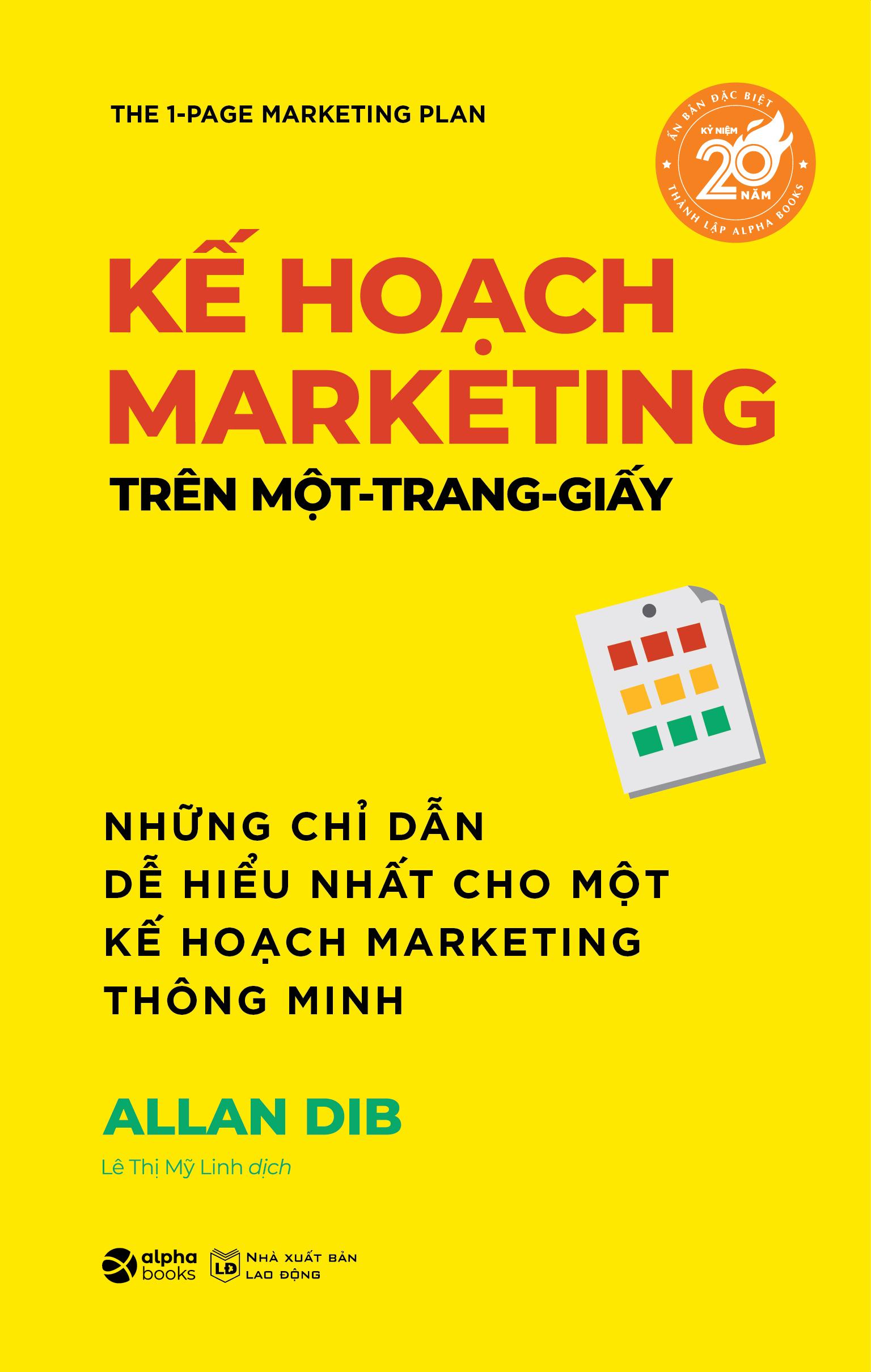 Trên thực tế, chiến lược Marketing của doanh nhân thành công Allan Dib chỉ là chín ô vuông gói gọn trong một trang giấy. Bằng việc kết hợp giữa các chiến lược, chiến thuật và các khái niệm đã được bảo chứng thành công sau nhiều thập kỷ thử nghiệm và đo lường bởi các bậc thầy về marketing phản hồi trực tiếp; cộng với những chiến lược thực tiễn do chính Allan đề xướng và áp dụng hiệu quả trong thực tiễn, Kế hoạch marketing một-trang-giấy là một bước đột phá trong khâu thực hiện. Với Kế hoạch marketing một-trang-giấy, marketing là thực sự trở thành một kỹ năng kinh doanh bậc thầy. Nó sẽ giúp doanh nghiệp của bạn thành công và quan trọng hơn thế, nó cũng giúp các doanh nghiệp và hoạt động kinh doanh khác mà bạn tham gia trong tương lai thành công.