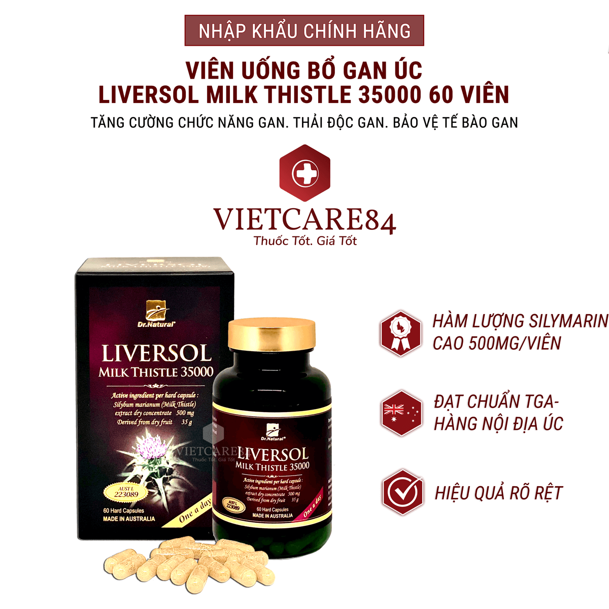 Viên uống thải độc gan Dr Natural LiverSol Milk Thistle 35000 là sản phẩm bổ gan cao cấp nhập khẩu chính hãng nguyên hộp từ Úc. Nếu bạn đang tìm kiếm một sản phẩm bổ gan nhập khẩu chính hãng thực sự tốt, Liversol là một lựa chọn phù hợp.