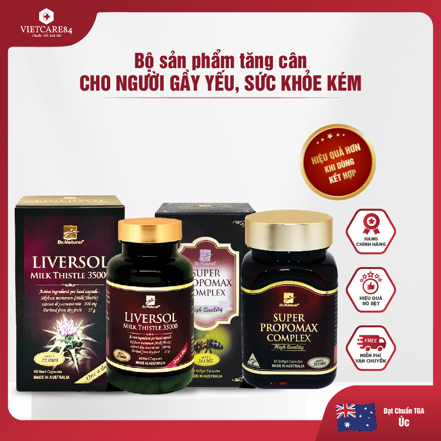 ✨Bộ Sản Phẩm Cho Người Gầy Yếu, Sức Khỏe Kém, Muốn Tăng Cân: Viên Uống Keo Ong Super Propomax Complex 60 Viên, Bổ Gan Liversol Milk Thistle 60 Viên