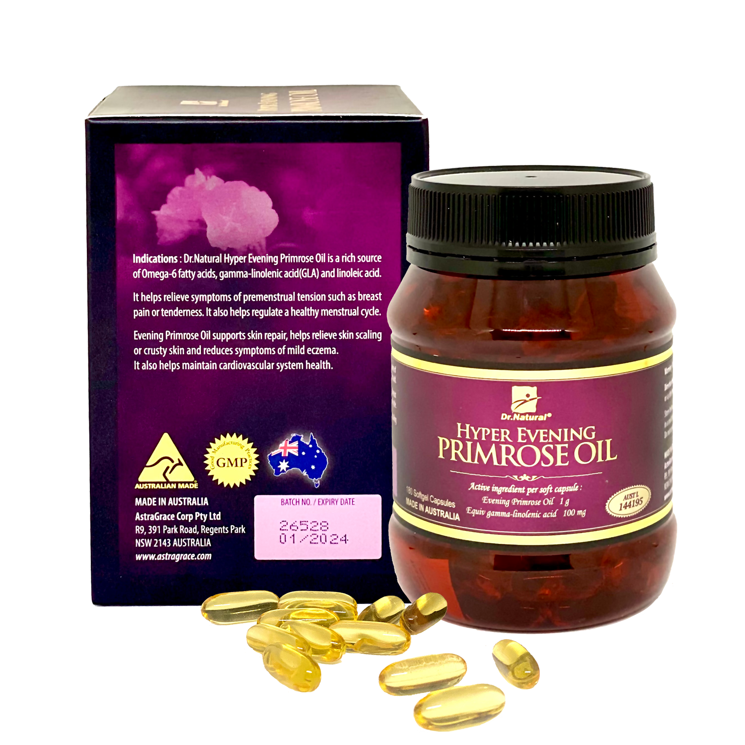 - Nhập khẩu chính hãng từ Australia. Viên uống nội tiết tố Hyper Evening Primrose Oil được sản xuất tại nhà máy đạt chuẩn GMP, đáp ứng các tiêu chuẩn khắt khe nhất của Cục Quản Lý Thuốc Trị Liệu của Úc (TGA); giúp bạn thực sự yên tâm khi sử dụng