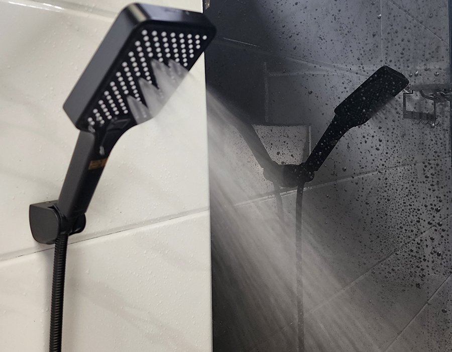 Chất liệu Nhưa ABS mạ màu đen, có thể điều chỉnh hướng dòng chảy của tay sen ( gật gù)