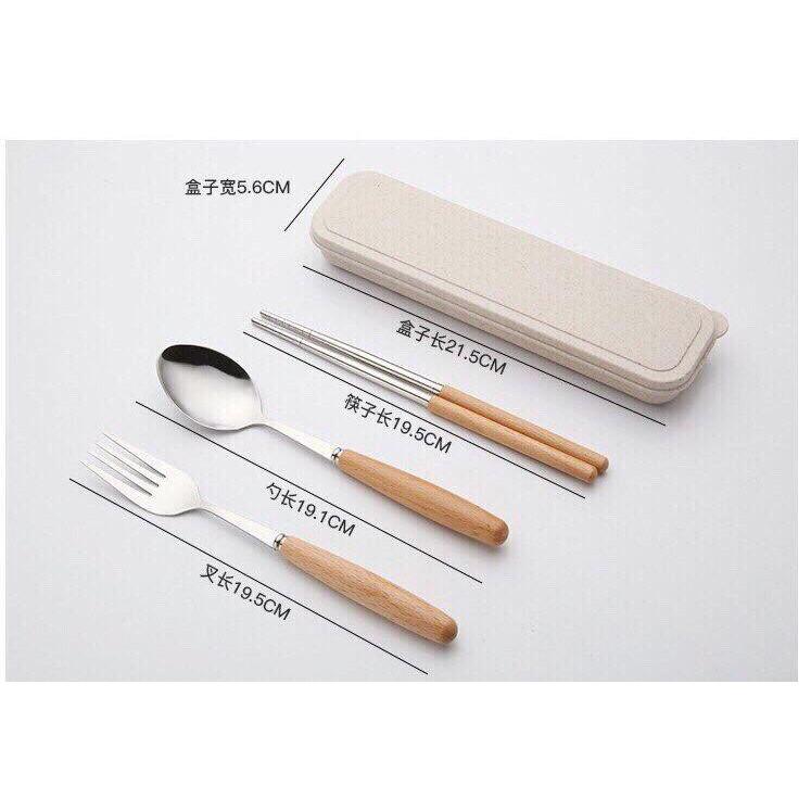 ✨Bộ thìa đũa lúa mạch cán gỗ kèm hộp đựng