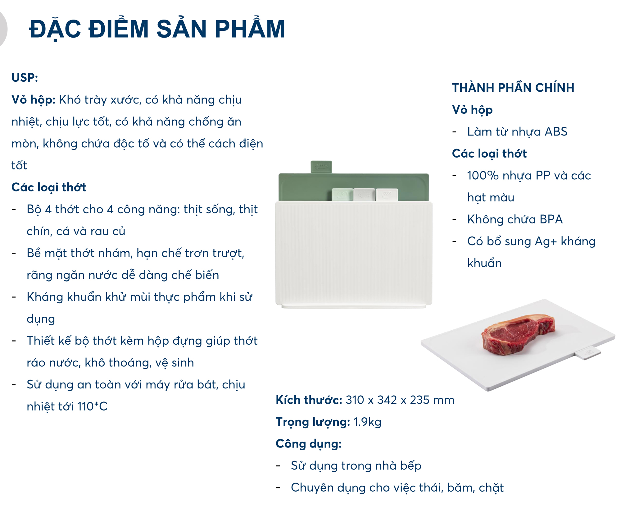 THÔNG TIN SẢN PHẨM: - Kháng khuẩn lâu dài, lành mạnh và thân thiện với môi trường - Thích hợp để cắt rau / cắt trái cây / cắt thịt - Vật liệu chống ăn