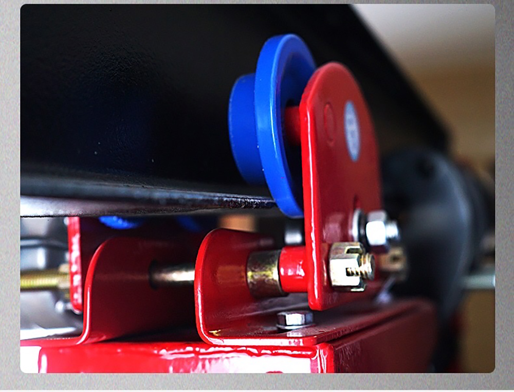 Sau khi đã gắn lắp được thanh pass vừa với máy tời và điều chỉnh độ rộng của khoảng cách 2 bánh xe phù hợp với dầm, ta tiến hành cố định các ốc vít.