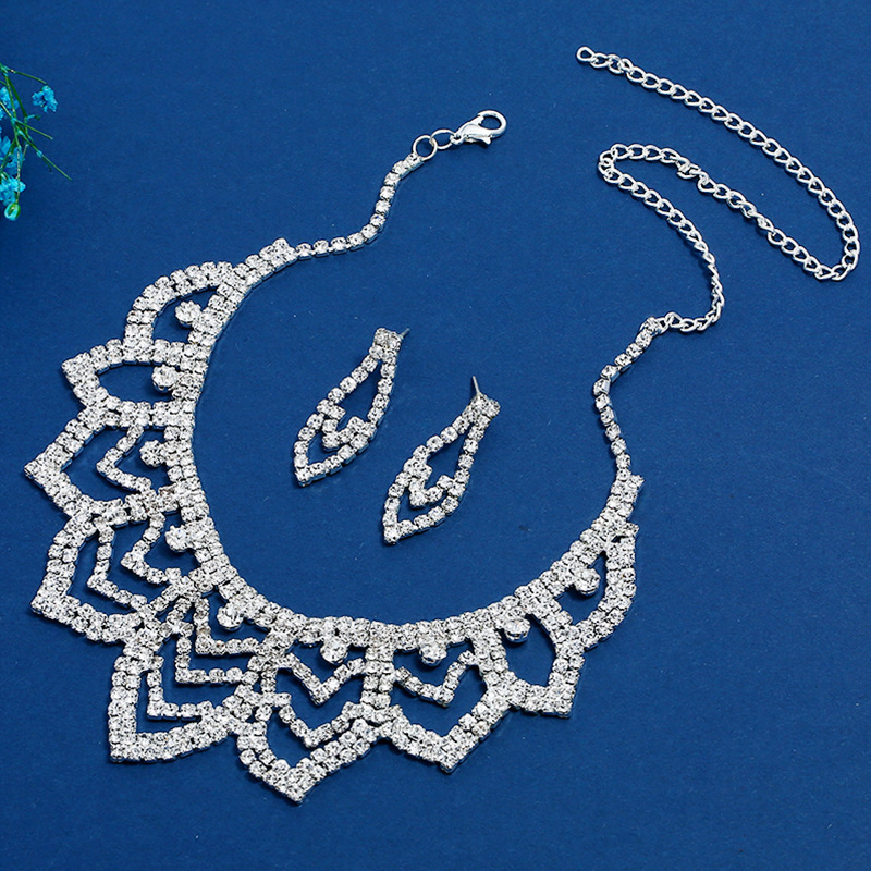 Bộ trang sức họa tiết đuôi công đính đá dạ tiệc CD04 Thiết kế cầu kỳ, tinh xảo, đính nhiều hạt pha lê phản chiếu ánh sáng lung linh qua từng góc nhìn Vẻ đẹp