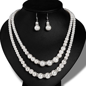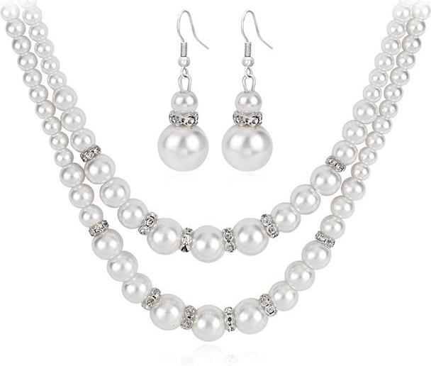 Trọn bộ hoa tai nụ và dây chuyền xuyên ngọc 2 viên trắng hồng - 950k #ngoctraiminhha #jewelry