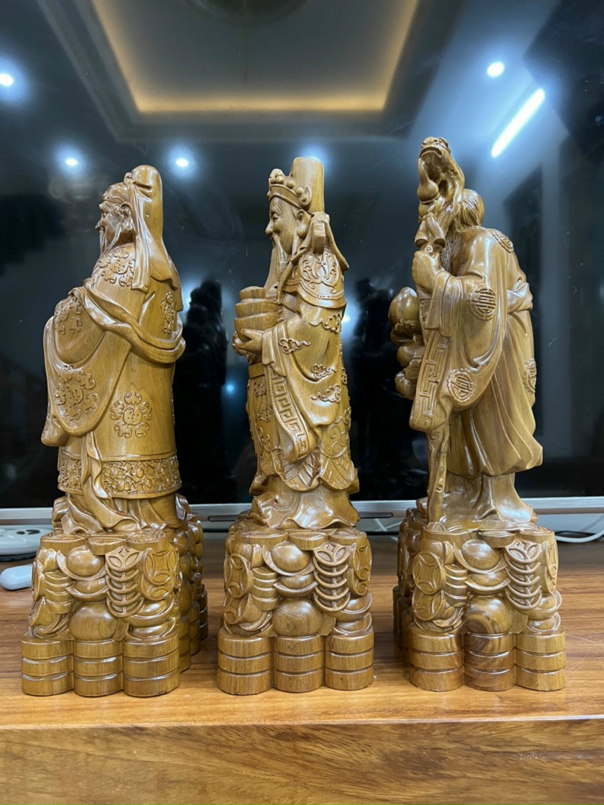 ✨Bộ tượng phật tam đa phúc lộc thọ bằng gỗ bách xanh thơm phức kt cao 40×13×11,5cm