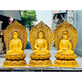 ✨Bộ Tượng phật tây phương tam thánh bằng gỗ gõ vàng kt 90×48×48cm