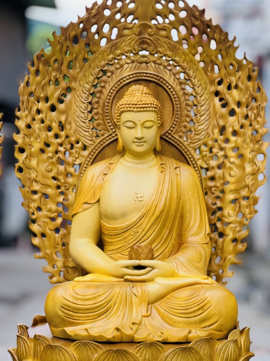 _ Bộ tượng phật tây phương tam thánh được làm bằng chất liệu gỗ gõ vàng liền khối tự nhiên 100%