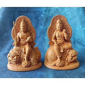 Mua tại TiktokChất liệu: Gỗ cây Bách Nhai thơm ngát Chạm khắc tinh xảo, tỉ mỉđến từng chi tiết nhỏ Có thể trưng trên xe ô tô, bàn làm việc . Kích thước: cao 12.3, ngang 8.5, sâu 5.6cm. được chạm khắc tinh xảo, tỉ mỉ đến từng chi tiết nhỏ nên rất thích hợp cho việc để trên xe ô tô hay bàn làm việc Phổ Hiền Bồ Tát đã được coi là biểu tương phong thủy mang lại nhiều may mắn về tiền bạc,phù độ chúng sanh cứu khổ cứu nạn nên được mọi người hết sức tôn sùng và yêu quí Văn Thù Bồ Tát - tượng trưng cho trí tuệ lớn.Ngài sẽ giúp trí tuệ của bạn sẽ không ngừng được khai phá, sự giác ngộ được nâng cao